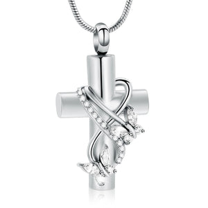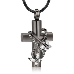 Crafted with care and available in a variety of colors, this necklace not only holds a small portion of ashes but also serves as a wearable reminder of your loved one’s spirit and everlasting presence. The delicate vines wrap gracefully around the cross, with the butterflies in flight representing freedom and transformation—symbols of hope and renewal.